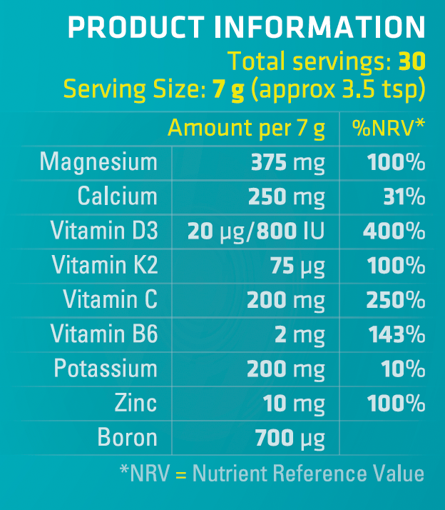 MAG365 BF Plus Calcium is a synergistic bone formula containing our awarding-winning MAG365 Ionic Magnesium Citrate Powder with the added goodness of calcium, vitamins D3, K2, C & B6, boron, zinc and potassium.
