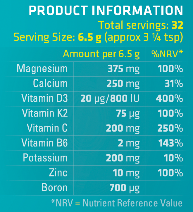 MAG365 BF Plus Calcium is a synergistic bone formula containing our awarding-winning MAG365 Ionic Magnesium Citrate Powder with the added goodness of calcium, vitamins D3, K2, C & B6, boron, zinc and potassium.